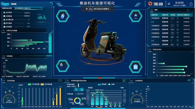 數據:為該企業定制化開發了企業級能源大屏,通過一個畫面即可可視化管理廠區的用電、污水排放、光伏等能源利用情況。