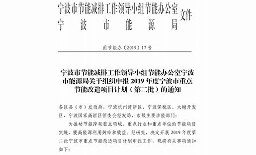 關于申報2019年度寧波市重點節能改造項目計劃(第二批)的通知